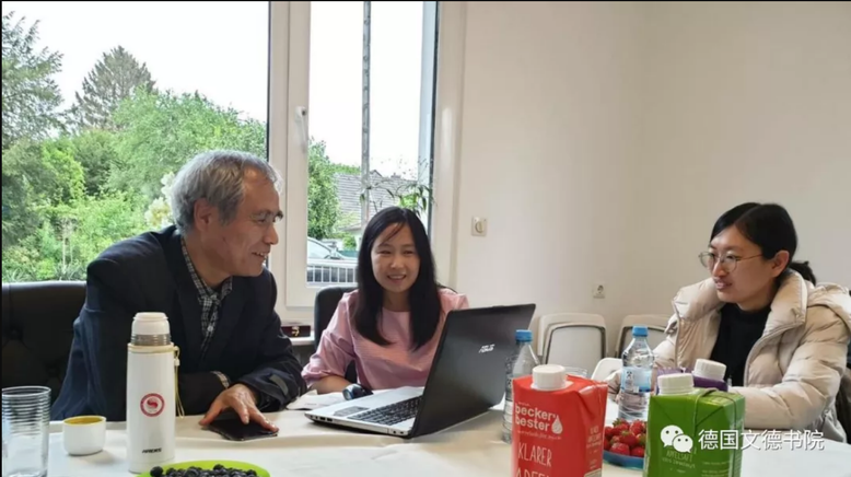 德国文德书院负责人王莉老师代表书院全体人员热烈欢迎韩星教授和时婧博士的到来,邀请他们和书院教师一起座谈,参会的老师们感到非常荣幸能与知名国学教育专家韩星教授面对面交流学习。