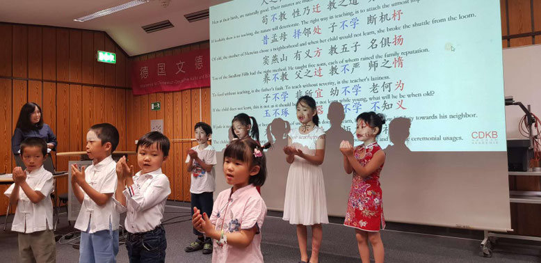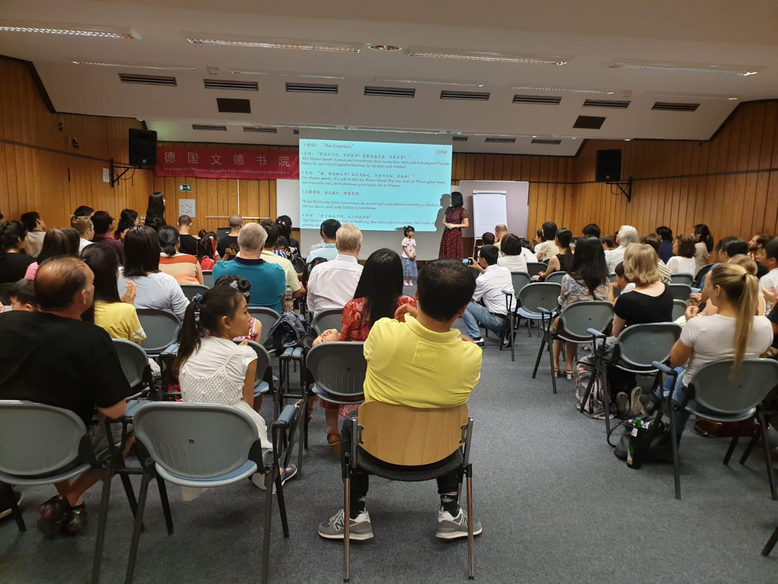 作为家长代表,她在现场给大家分享了孩子学习中文的感受。牛博士说,她的两个孩子都在德国出生,海外华人子女学习中文最重要的是父母要给孩子起到很好的表率作用,让孩子们有一个良好的中文学习环境,比如和孩子一起背诵诗词。她感到非常幸运的是,Charlotte四岁半的时候就到科隆的文德书院学中文,王老师不仅教孩子们读书写字,在文化教育上,同时还教海外华裔学生学习国学经典,传承中华经典文化。