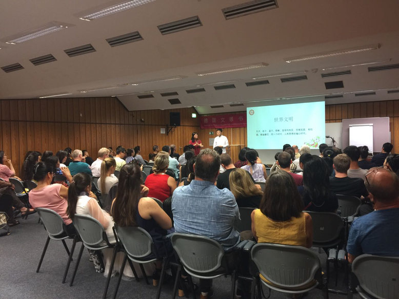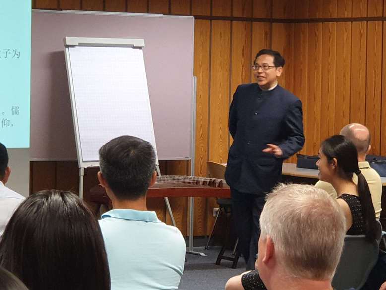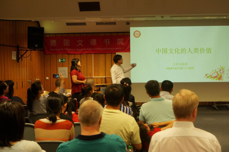 2019年6月23日,德国文德书院(科隆)邀请孔子第75代孙、福州市文儒书院孔海钦(又名孔祥语)院长和长江商学院人文与商业伦理研究中心主任、北京大学高等人文研究院副研究员王建宝,为中德友人讲授中华优秀文化。此次“科隆中华优秀文化公益活动”会场座无虚席,大家热切等待别具一格的海外中华经典文化盛会的开始。