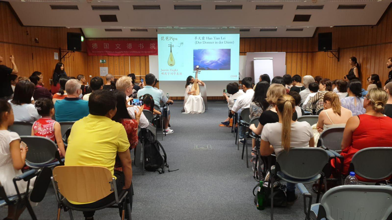 德国文德书院学生们精彩纷呈的中华经典吟诵和中国传统乐器表演,赢得了全场观众的阵阵掌声。